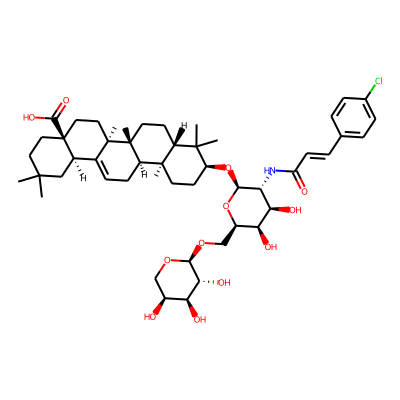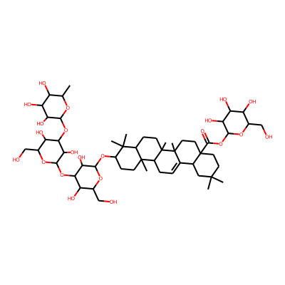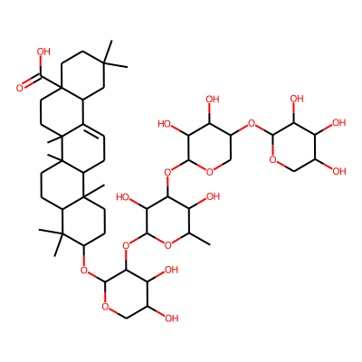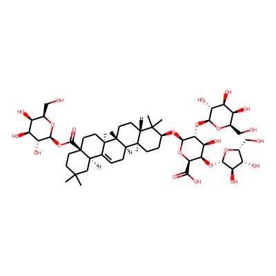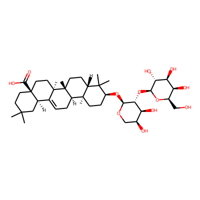 CC1(C)CCC2(C(=O)O)CCC3(C)C(=CCC4C5(C)CCC(O)C(C)(C)C5CCC43C)C2C1| HBA: | 3 | RingCount: | 5 |
