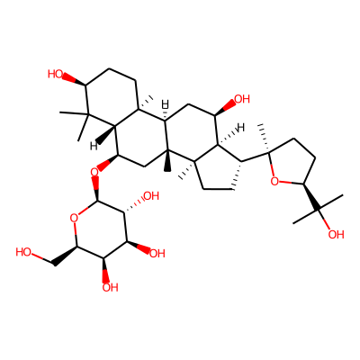 CC(C)(O)C1CCC(C)(C2CCC3(C)C2C(O)CC2C4(C)CCC(O)C(C)(C)C4C(O)CC23C)O1| HBA: | 5 | RingCount: | 5 |