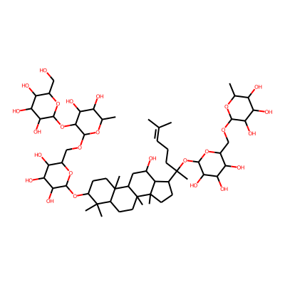 CC(C)=CCCC(C)(O)C1CCC2(C)C1C(O)CC1C3(C)CCC(O)C(C)(C)C3CCC12C| HBA: | 3 | RingCount: | 4 |