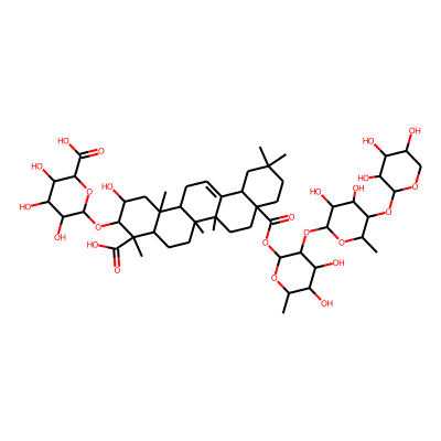 CC1(C)CCC2(C(=O)O)CCC3(C)C(=CCC4C5(C)CC(O)C(O)C(C)(C(=O)O)C5CCC43C)C2C1| HBA: | 6 | RingCount: | 5 |
