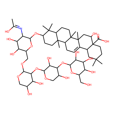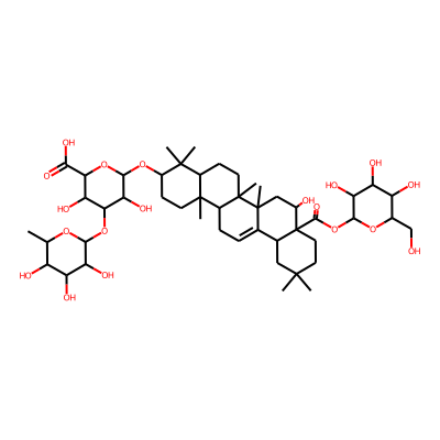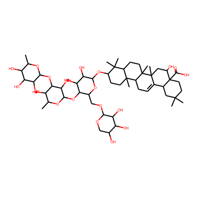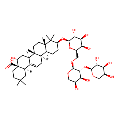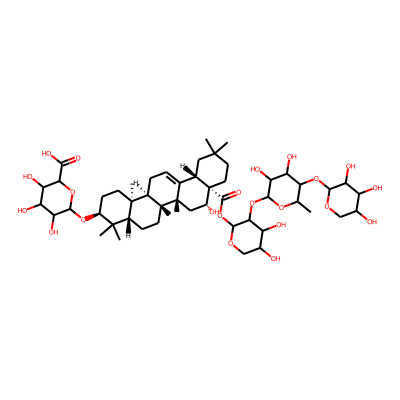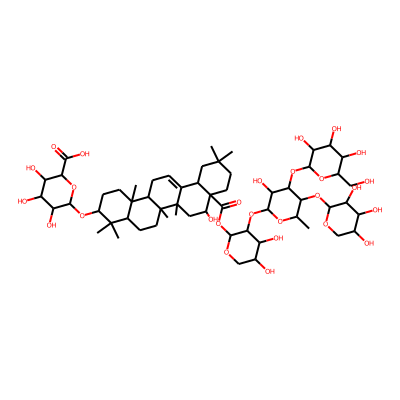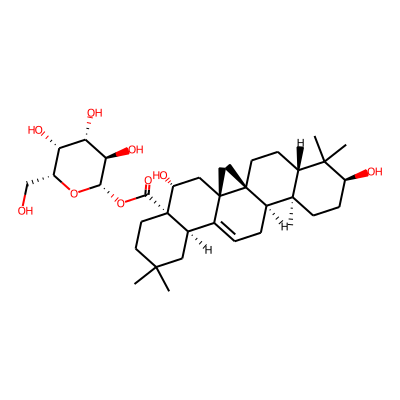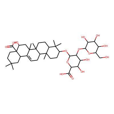 CC1(C)CCC2(C(=O)O)C(O)CC3(C)C(=CCC4C5(C)CCC(O)C(C)(C)C5CCC43C)C2C1| HBA: | 4 | RingCount: | 5 |
