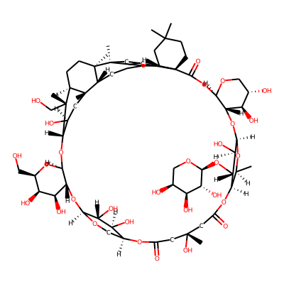 CC1OC2OC3C(OCC(O)C3O)OC(=O)C34CCC(C)(C)CC3C3=CCC5C6(C)CC(O)C(OC7OC(CO)C(O)C(O)C7OC7OCC(OC(=O)CC(C)(O)CC(=O)OC1C(O)C2O)C(O)C7O)C(C)(CO)C6CCC5(C)C3(C)CC4| HBA: | 25 | RingCount: | 17 |