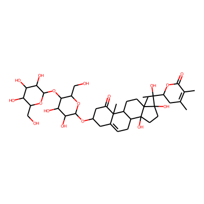 CC1=C(C)C(=O)OC(C(C)(O)C2(O)CCC3(O)C4CC=C5CC(O)CC(=O)C5(C)C4CCC32C)C1| HBA: | 7 | RingCount: | 5 |