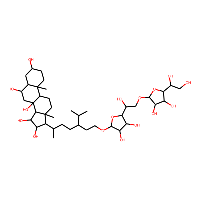 CC(C)C(CCO)CCC(C)C1C(O)C(O)C2C1(C)CCC1C3(C)CCC(O)CC3C(O)CC12O| HBA: | 6 | RingCount: | 4 |
