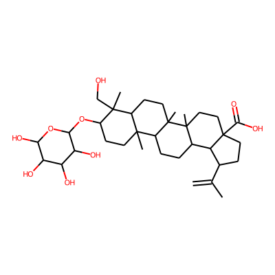 C=C(C)C1CCC2(C(=O)O)CCC3(C)C(CCC4C5(C)CCC(O)C(C)(CO)C5CCC43C)C12| HBA: | 4 | RingCount: | 5 |