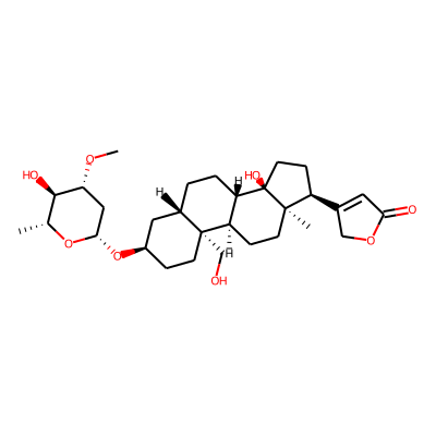 CC12CCC3C(CCC4CC(O)CCC43CO)C1(O)CCC2C1=CC(=O)OC1| HBA: | 5 | RingCount: | 5 |