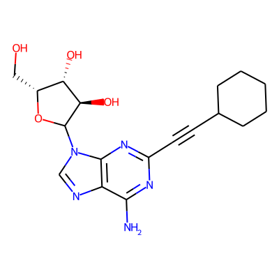 Nc1nc(C#CC2CCCCC2)nc2c1N=C[N]2| HBA: | 5 | RingCount: | 3 |