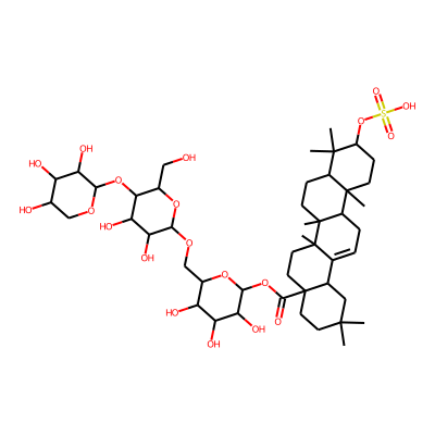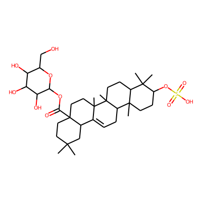 CC1(C)CCC2(C(=O)O)CCC3(C)C(=CCC4C5(C)CCC(OS(=O)(=O)O)C(C)(C)C5CCC43C)C2C1| HBA: | 6 | RingCount: | 5 |