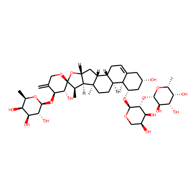 C=C1COC2(OC3CC4C5CC=C6CC(O)CC(O)C6(C)C5CCC4(C)C3C2C)C(O)C1O| HBA: | 6 | RingCount: | 6 |