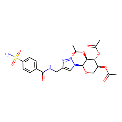 NS(=O)(=O)c1ccc(C(=O)NCC2=C[N]N=N2)cc1| HBA: | 8 | RingCount: | 2 |