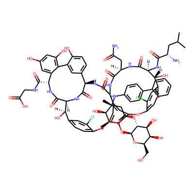CC(C)CC(N)C(=O)NC1C(=O)NC(CC(N)=O)C(=O)NC2C(=O)NC3C(=O)NC(C(=O)NC(C(=O)NCC(=O)O)c4cc(O)cc(O)c4-c4cc3ccc4O)C(O)c3ccc(c(Cl)c3)Oc3cc2cc(c3O)Oc2ccc(cc2Cl)C1O| HBA: | 27 | RingCount: | 10 |