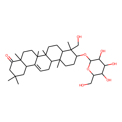 CC1(C)CC(=O)C2(C)CCC3(C)C(=CCC4C5(C)CCC(O)C(C)(CO)C5CCC43C)C2C1| HBA: | 3 | RingCount: | 5 |