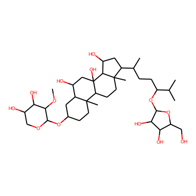 CC(C)C(O)CCC(C)C1CC(O)C2C1(C)CCC1C3(C)CCC(O)CC3C(O)CC12O| HBA: | 5 | RingCount: | 4 |