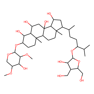 CC(C)C(O)CCC(C)C1CC(O)C2C1(C)CCC1C3(C)CCC(O)C(O)C3C(O)CC12O| HBA: | 6 | RingCount: | 4 |