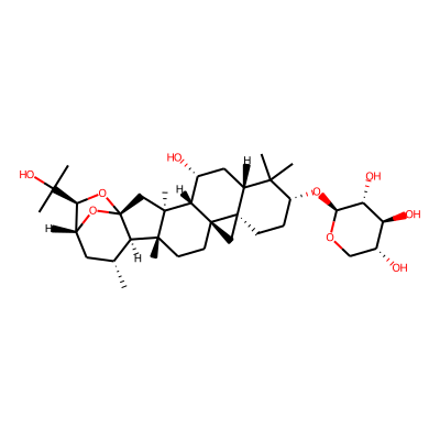 CC1CC2OC3(CC4(C)C5C(O)CC6C(C)(C)C(O)CCC67CC57CCC4(C)C13)OC2C(C)(C)O| HBA: | 5 | RingCount: | 7 |