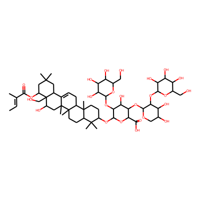 CC=C(C)C(=O)OC1CC(C)(C)CC2C3=CCC4C5(C)CCC(O)C(C)(C)C5CCC4(C)C3(C)CC(O)C12CO| HBA: | 5 | RingCount: | 5 |