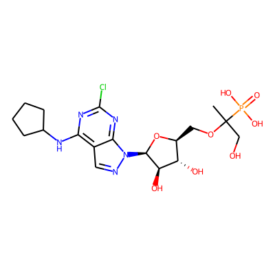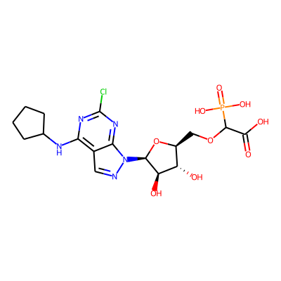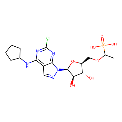 Clc1nc2c(c(NC3CCCC3)n1)C=N[N]2| HBA: | 5 | RingCount: | 3 |