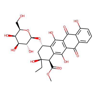 CCC1(O)CC(O)c2c(O)c3c(c(O)c2C1C(=O)OC)C(=O)c1cccc(O)c1C3=O| HBA: | 9 | RingCount: | 4 |