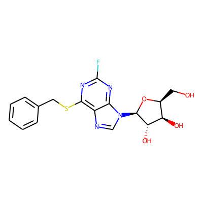 Fc1nc2c(c(SCc3ccccc3)n1)N=C[N]2| HBA: | 4 | RingCount: | 3 |