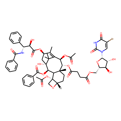 COC(=O)CCC(=O)OC1C(OC(C)=O)C2=C(C)C(OC(=O)C(O)C(NC(=O)c3ccccc3)c3ccccc3)CC(O)(C(OC(=O)c3ccccc3)C3C1(C)CCC1OCC13OC(C)=O)C2(C)C| HBA: | 17 | RingCount: | 7 |