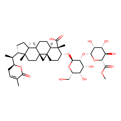 CC1=CCC(C(C)C2CCC3(C)C4CCC5C(C)(C(=O)O)C(O)CCC56CC46CCC23C)OC1=O| HBA: | 5 | RingCount: | 6 |