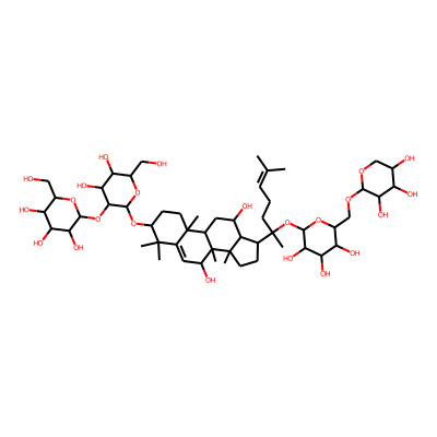 CC(C)=CCCC(C)(O)C1CCC2(C)C1C(O)CC1C3(C)CCC(O)C(C)(C)C3=CC(O)C12C| HBA: | 4 | RingCount: | 4 |