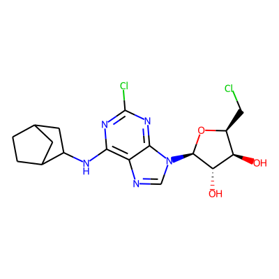 Clc1nc2c(c(NC3CC4CCC3C4)n1)N=C[N]2| HBA: | 5 | RingCount: | 4 |