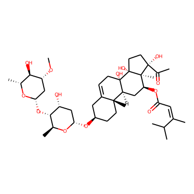 CC(=O)C1(O)CCC2(O)C3(O)CC=C4CC(O)CCC4(C)C3CC(OC(=O)C=C(C)C(C)C)C12C| HBA: | 7 | RingCount: | 4 |