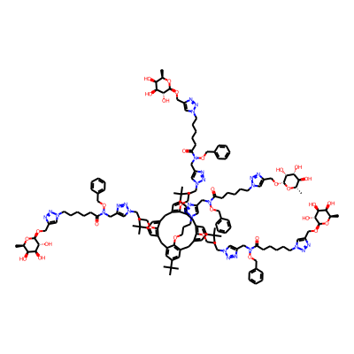 CC(C)(C)c1cc2c(OCCCn3cc(CN(OCc4ccccc4)C(=O)CCCCCn4cc(CO)nn4)nn3)c(c1)Cc1cc(C(C)(C)C)cc(c1OCCCn1cc(CN(OCc3ccccc3)C(=O)CCCCCn3cc(CO)nn3)nn1)Cc1cc(C(C)(C)C)cc(c1OCCCn1cc(CN(OCc3ccccc3)C(=O)CCCCCn3cc(CO)nn3)nn1)Cc1cc(C(C)(C)C)cc(c1OCCCn1cc(CN(OCc3ccccc3)C(=O)CCCCCn3cc(CO)nn3)nn1)C2| HBA: | 44 | RingCount: | 17 |