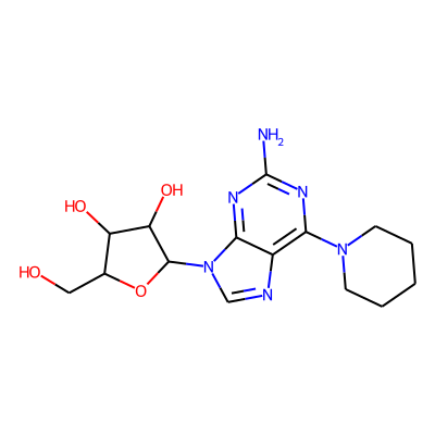 Nc1nc2c(c(N3CCCCC3)n1)N=C[N]2| HBA: | 6 | RingCount: | 3 |