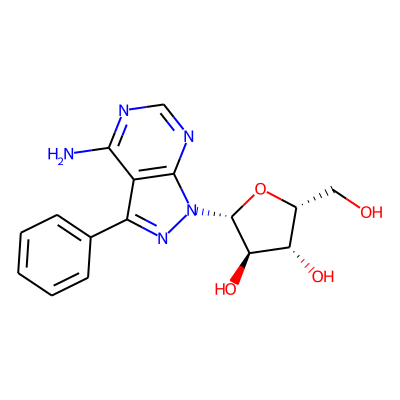 Nc1ncnc2c1C(c1ccccc1)=N[N]2| HBA: | 5 | RingCount: | 3 |