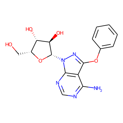 Nc1ncnc2c1C(Oc1ccccc1)=N[N]2| HBA: | 6 | RingCount: | 3 |