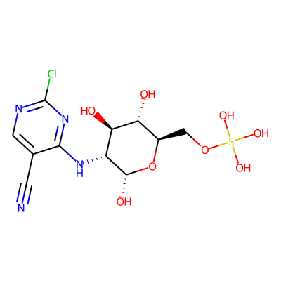 N#Cc1cnc(Cl)nc1N| HBA: | 4 | RingCount: | 1 |
