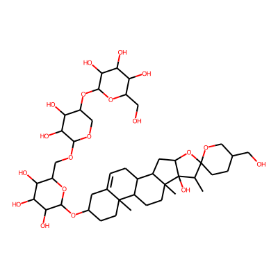 CC1C2(CCC(CO)CO2)OC2CC3C4CC=C5CC(O)CCC5(C)C4CCC3(C)C21O| HBA: | 5 | RingCount: | 6 |