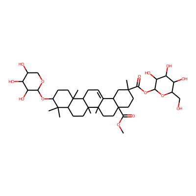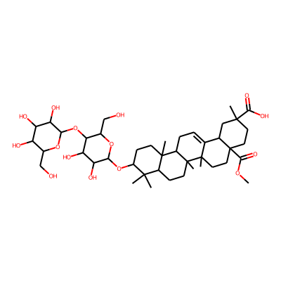COC(=O)C12CCC(C)(C(=O)O)CC1C1=CCC3C4(C)CCC(O)C(C)(C)C4CCC3(C)C1(C)CC2| HBA: | 5 | RingCount: | 5 |