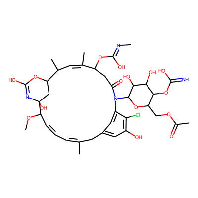 CN=C(O)OC1CC(=O)Nc2cc(cc(O)c2Cl)CC(C)=CC=CC(OC)C2(O)CC(OC(O)=N2)C(C)C=C1C| HBA: | 11 | RingCount: | 3 |