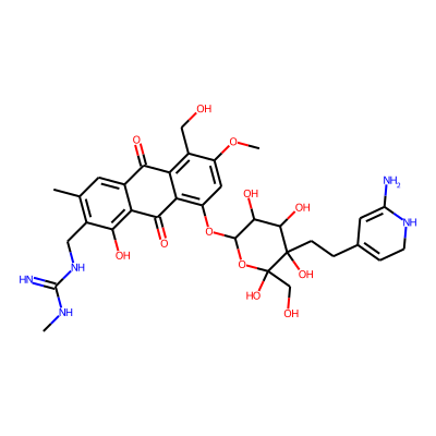 CNC(=N)NCc1c(C)cc2c(c1O)C(=O)c1c(O)cc(OC)c(CO)c1C2=O| HBA: | 9 | RingCount: | 3 |