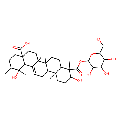 CC1CCC2(C(=O)O)CCC3(C)C(=CCC4C5(C)CCC(O)C(C)(C(=O)O)C5CCC43C)C2C1(C)O| HBA: | 6 | RingCount: | 5 |