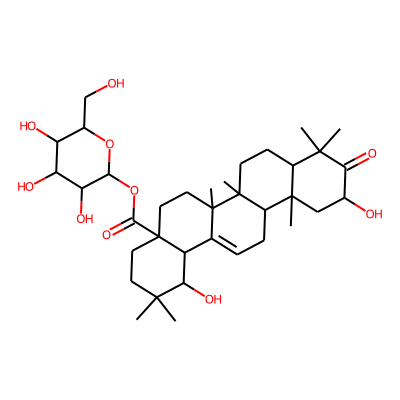 CC1(C)CCC2(C(=O)O)CCC3(C)C(=CCC4C5(C)CC(O)C(=O)C(C)(C)C5CCC43C)C2C1O| HBA: | 5 | RingCount: | 5 |