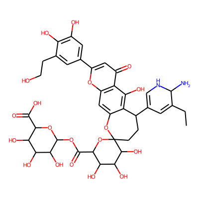 CCC1=CC(C2CCC3(Oc4cc5oc(-c6cc(O)c(O)c(CCO)c6)cc(=O)c5c(O)c42)OC(C(=O)O)C(O)C(O)C3O)=CNC1N| HBA: | 15 | RingCount: | 6 |