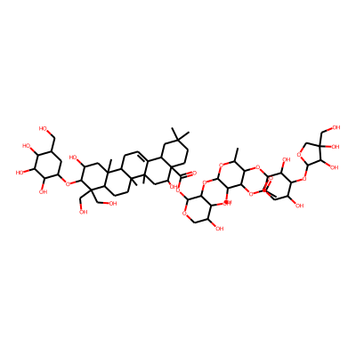 CC1(C)CCC2(C(=O)O)C(O)CC3(C)C(=CCC4C5(C)CC(O)C(OC6CC(CO)C(O)C(O)C6O)C(CO)(CO)C5CCC43C)C2C1| HBA: | 11 | RingCount: | 6 |
