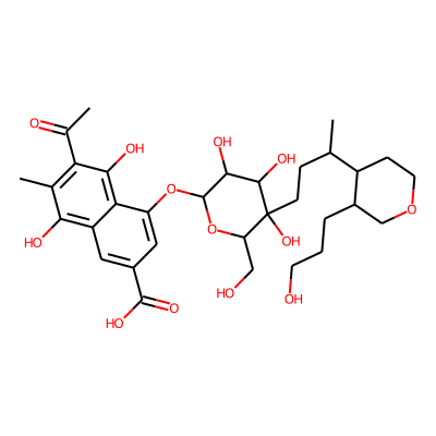 CC(=O)c1c(C)c(O)c2cc(C(=O)O)cc(O)c2c1O| HBA: | 6 | RingCount: | 2 |