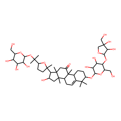 CC(C)(O)C1CCC(C)(C2C(O)CC3(C)C4CC=C5C(CCC(O)C5(C)C)C4(C)C(=O)CC23C)O1| HBA: | 5 | RingCount: | 5 |