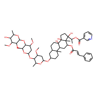 CC(OC(=O)c1cccnc1)C1(O)CCC2(O)C3(O)CCC4CC(O)CCC4(C)C3CC(OC(=O)C=Cc3ccccc3)C12C| HBA: | 9 | RingCount: | 6 |