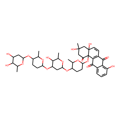 CC1OC(OC23C(=O)CC(C)(O)CC2(O)C=CC2=C3C(=O)c3cccc(O)c3C2=O)CCC1O| HBA: | 9 | RingCount: | 5 |