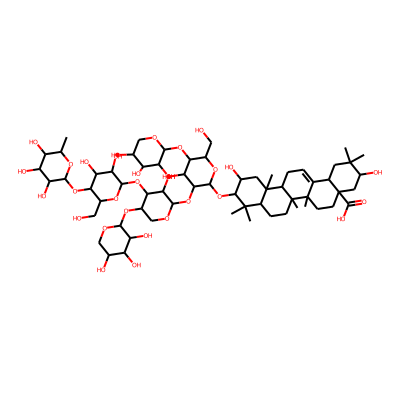 CC1(C)CC2C3=CCC4C5(C)CC(O)C(O)C(C)(C)C5CCC4(C)C3(C)CCC2(C(=O)O)CC1O| HBA: | 5 | RingCount: | 5 |