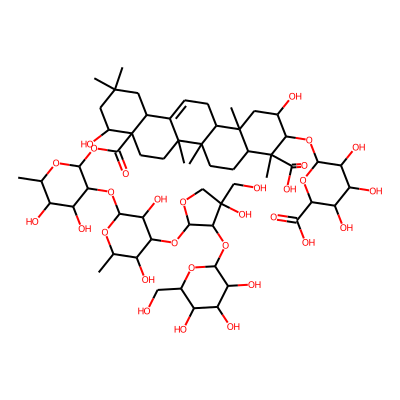 CC1(C)CC(O)C2(C(=O)O)CCC3(C)C(=CCC4C5(C)CC(O)C(O)C(C)(C(=O)O)C5CCC43C)C2C1| HBA: | 7 | RingCount: | 5 |