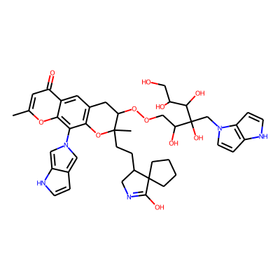 Cc1cc(=O)c2cc3c(c(-n4cc5cc[nH]c5c4)c2o1)OC(C)(CCC1CN=C(O)C12CCCC2)C(O)C3| HBA: | 8 | RingCount: | 7 |