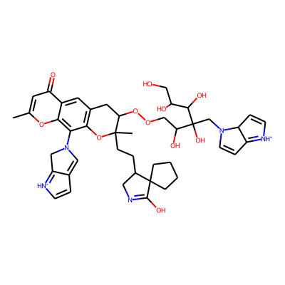 Cc1cc(=O)c2cc3c(c(N4C=C5C=C[NH+]=C5C4)c2o1)OC(C)(CCC1CN=C(O)C12CCCC2)C(O)C3| HBA: | 8 | RingCount: | 7 |