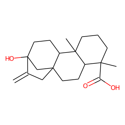 C=C1CC23CCC4C(C)(C(=O)O)CCCC4(C)C2CCC1(O)C3| HBA: | 3 | RingCount: | 4 |